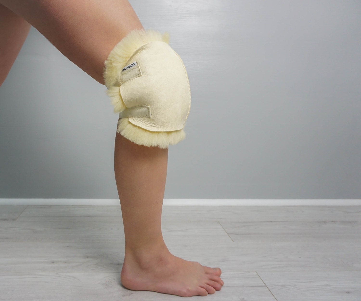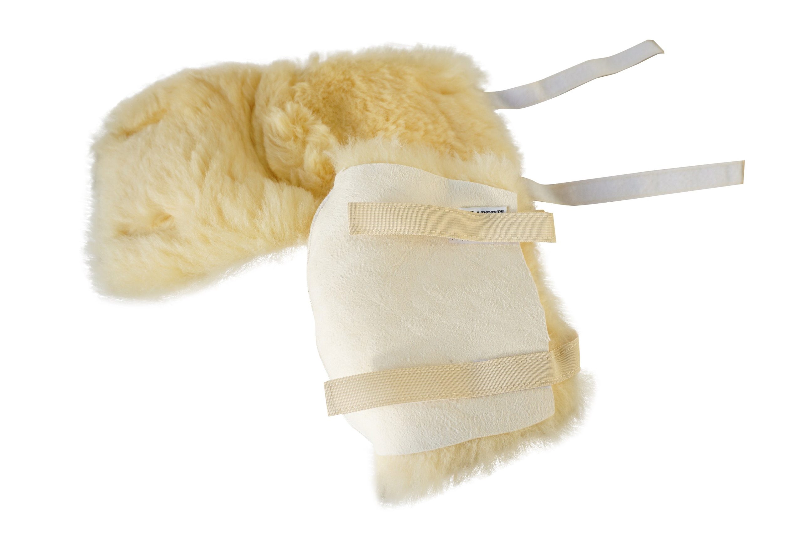 Support your knee injury and enjoy comfort with this Genuine Sheepskin Knee Pad. Perfect for those that suffered a knee injury or those that have knee replacements, this knee protector helps create a comforting environment for your aching knees!